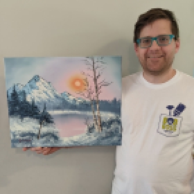 I paint a Bob Ross style painting in 30 minutes while sharing my story and anecdotes.